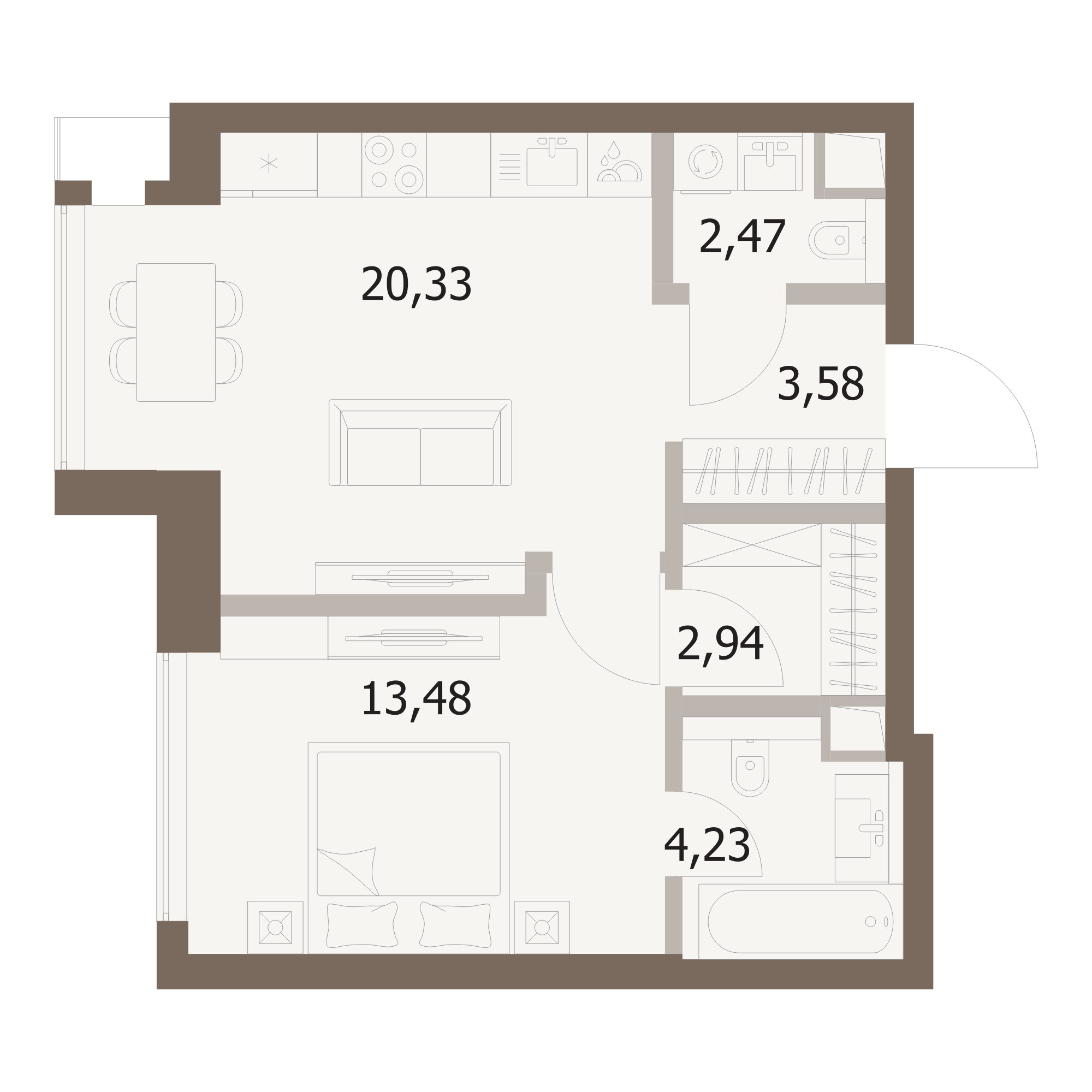 1-комн · 48 м² · 23 эт.