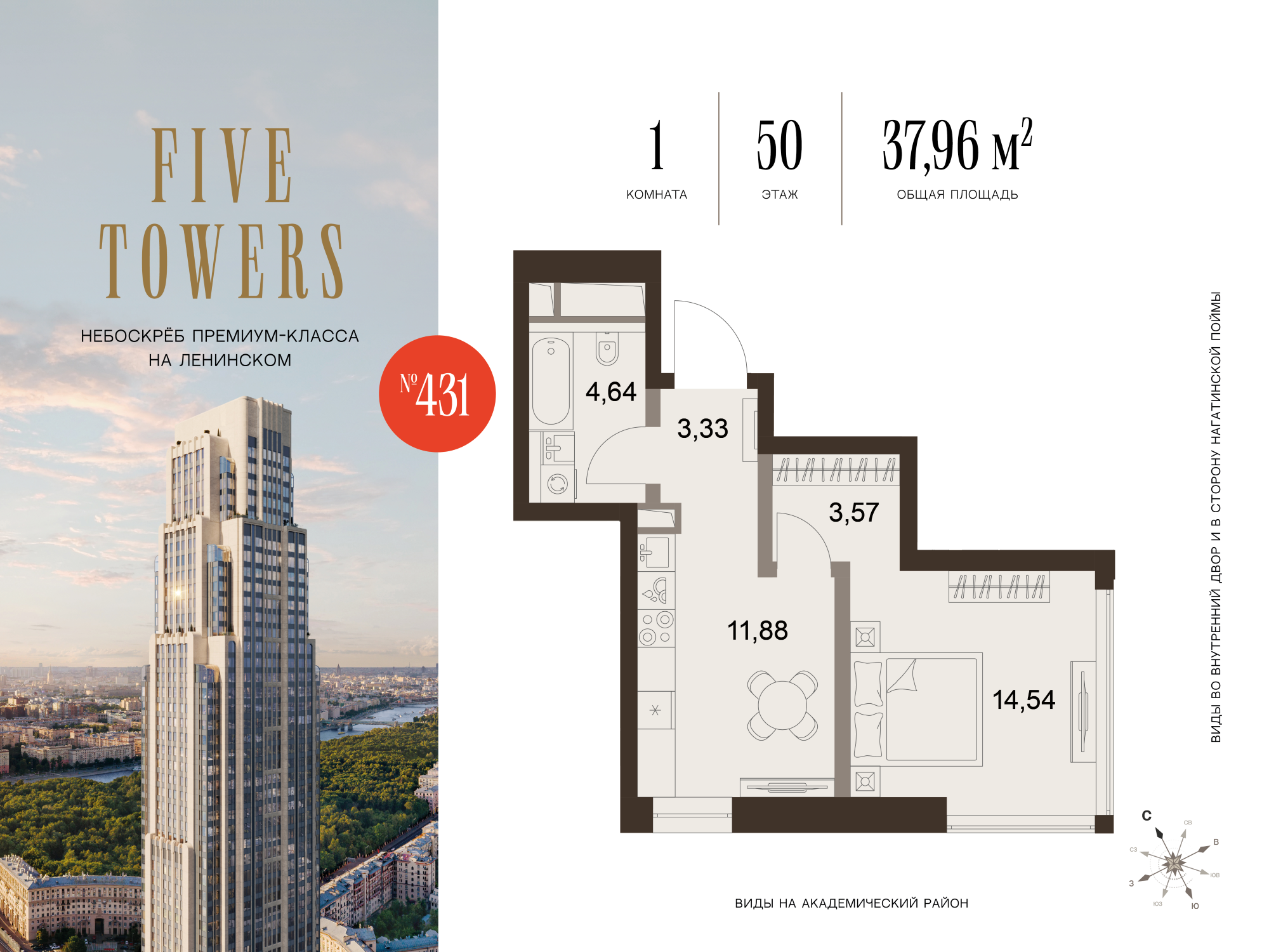 1-комн · 38 м² · 50 эт.