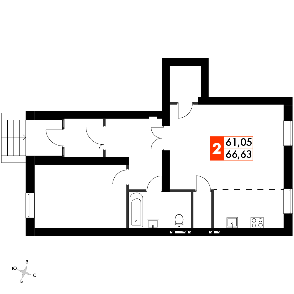 2-комн · 61 м² · 1 эт.