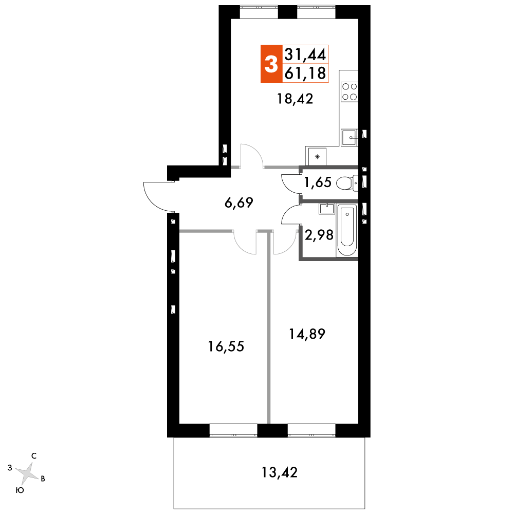 2-комн · 67 м² · 3 эт.