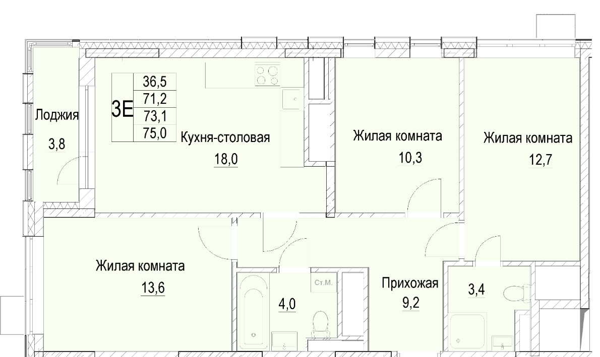 3-комн · 75 м² · 18/23