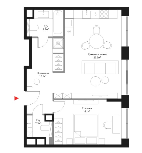 Минимальная площадь: 56,5 м² Максимальная площадь: 99,4 м²