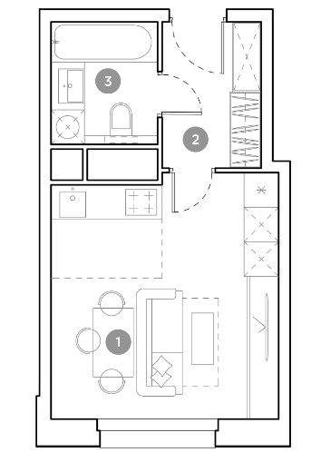 Минимальная площадь: 24,8 м² Максимальная площадь: 75,8 м²