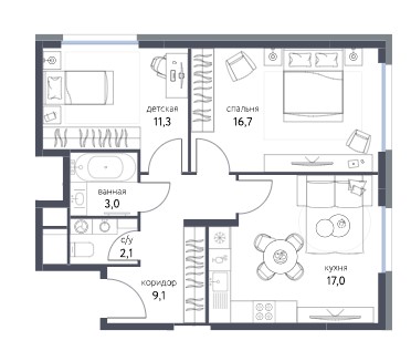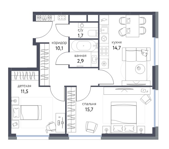 2-комн · 59 м² · 7 эт.
