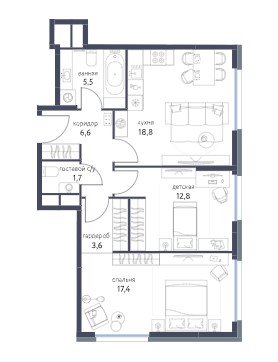 2-комн · 66 м² · 17 эт.