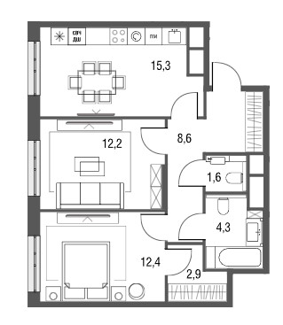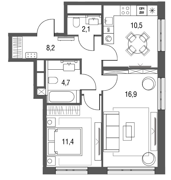 2-комн · 56 м² · 16 эт.