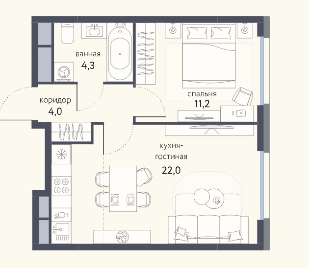 1-комн · 40 м² · 22 эт.