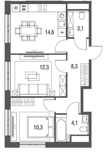 Студия · 39 м² · 12/24