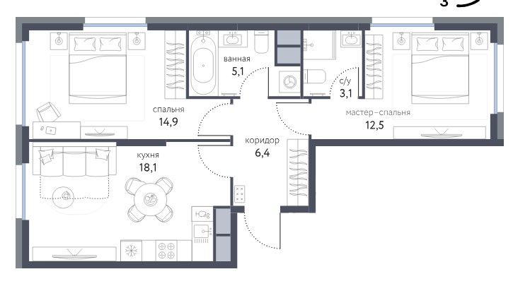 2-комн · 39 м² · 18 эт.