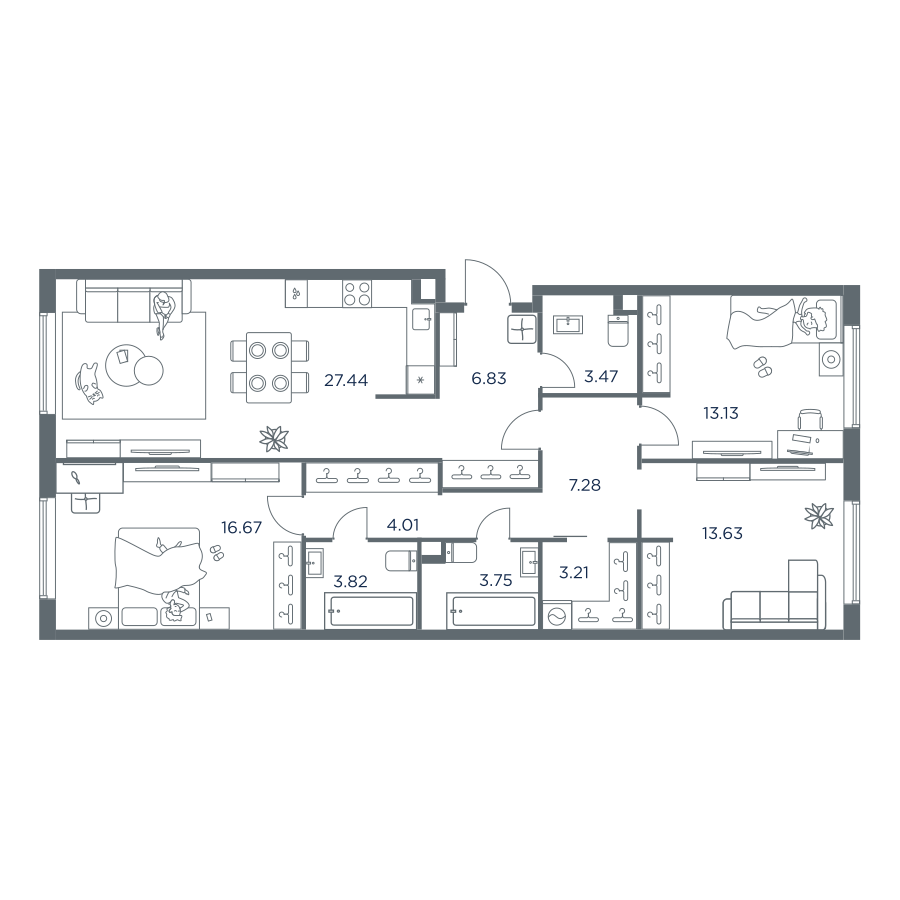 3-комн · 106 м² · 7/32