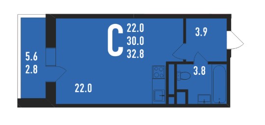 Минимальная площадь: 32,8 м² Максимальная площадь: 63,2 м²