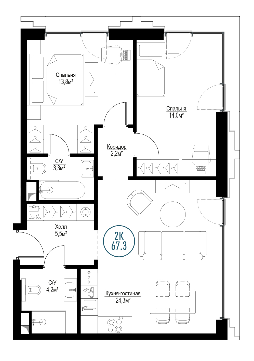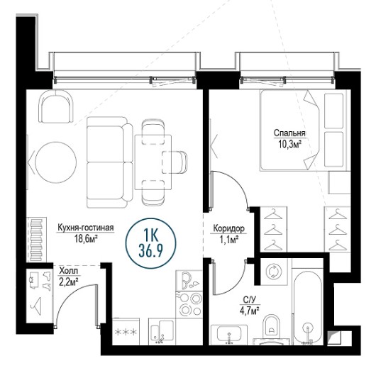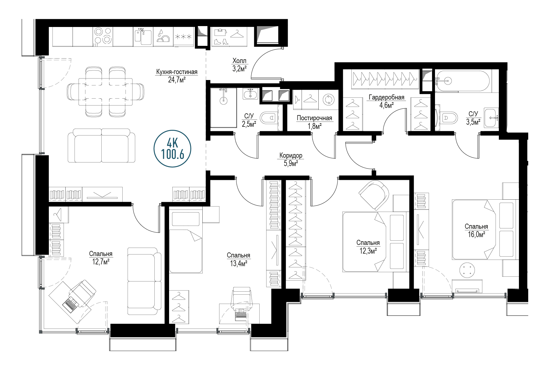 Минимальная площадь: 37,0 м² Максимальная площадь: 99,6 м²