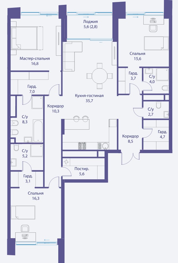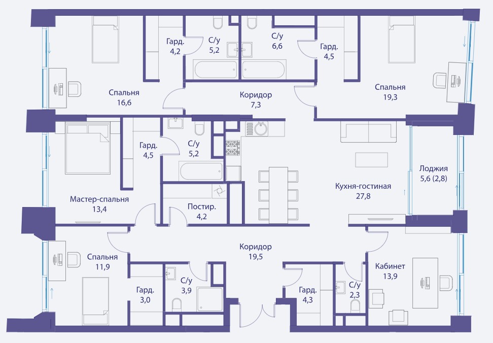 Минимальная площадь: 150,3 м² Максимальная площадь: 218,6 м²