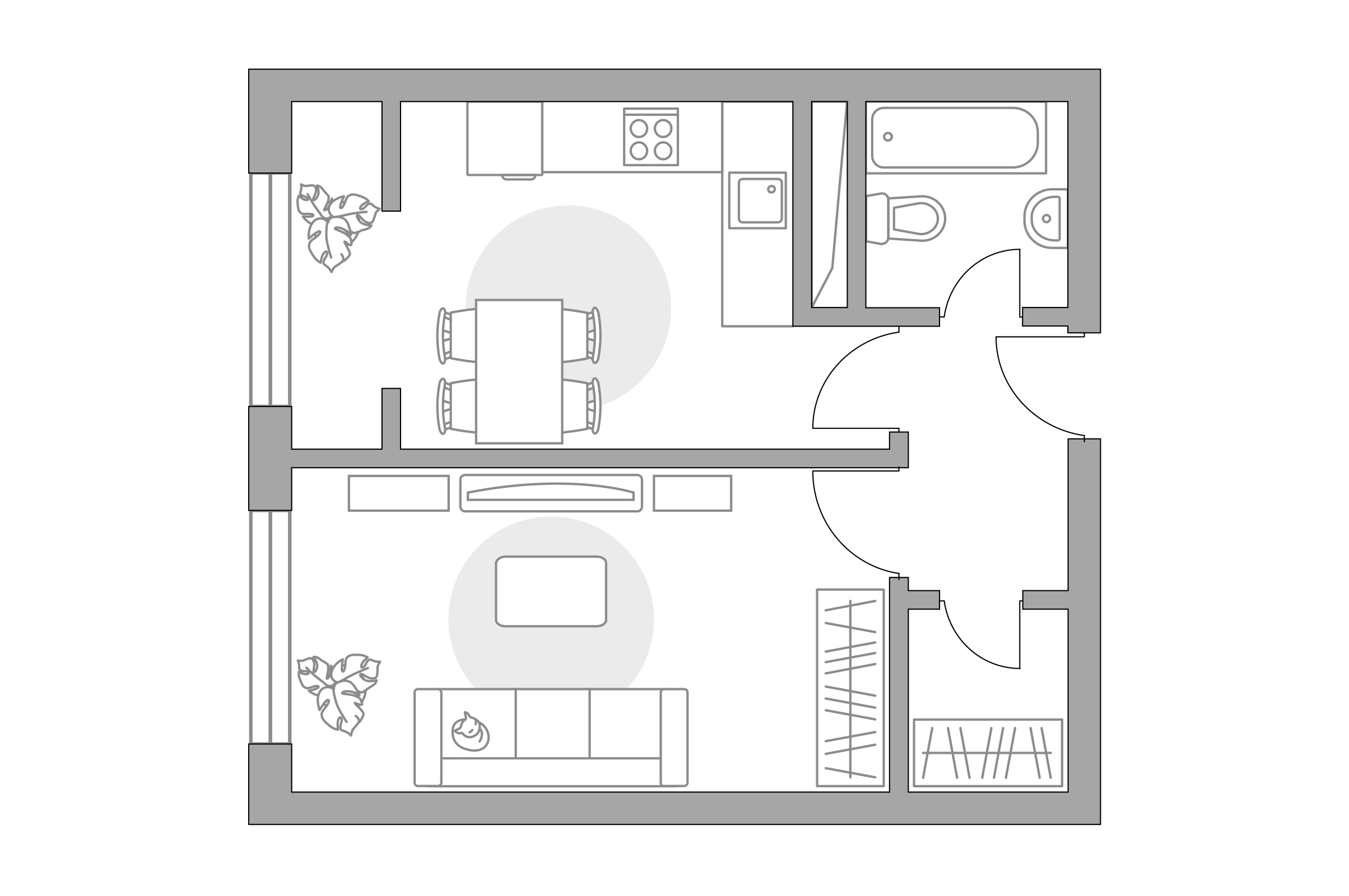 Минимальная площадь: 26,2 м² Максимальная площадь: 34,4 м²