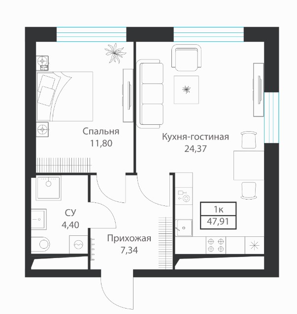 1-комн · 48 м² · 7 эт.