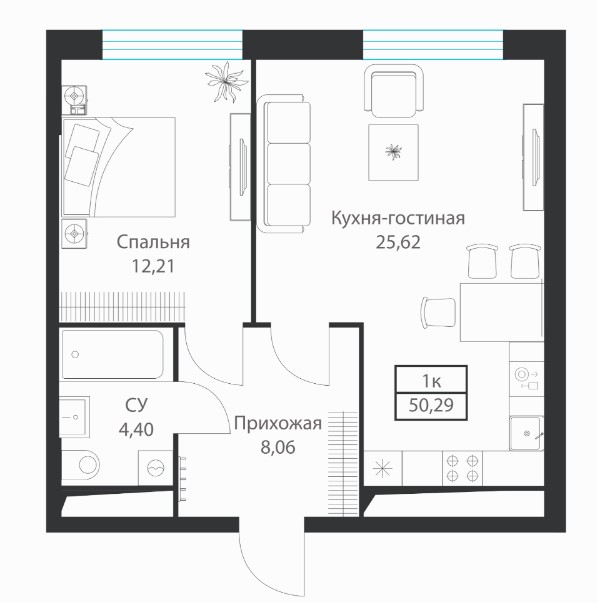 1-комн · 50 м² · 7 эт.