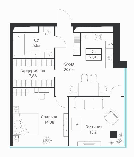 2-комн · 61 м² · 9 эт.