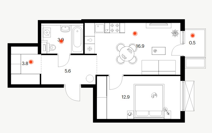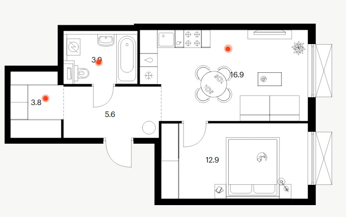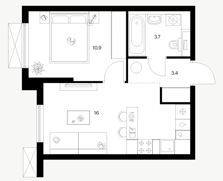 1-комн · 43 м² · 16 эт.