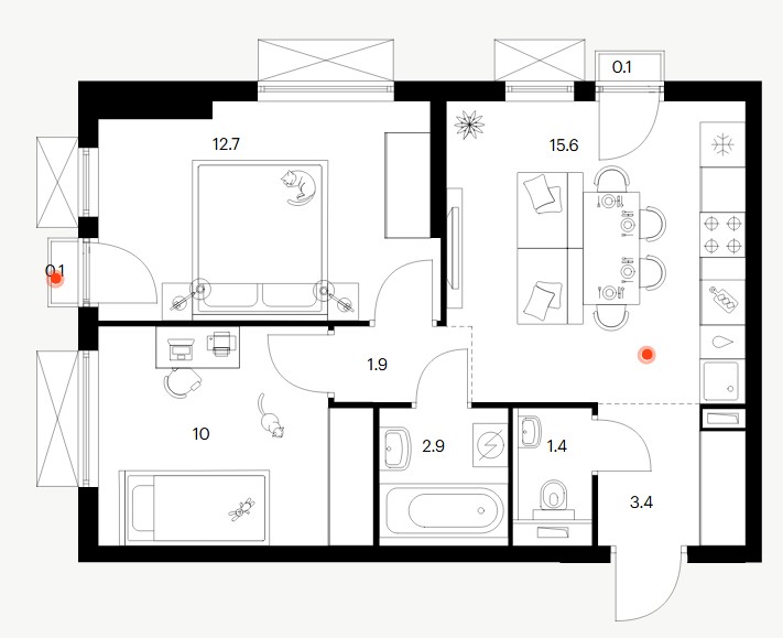 1-комн · 44 м² · 8 эт.