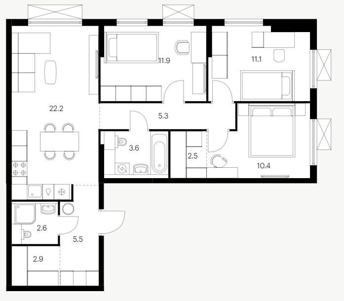 3-комн · 77 м² · 24 эт.
