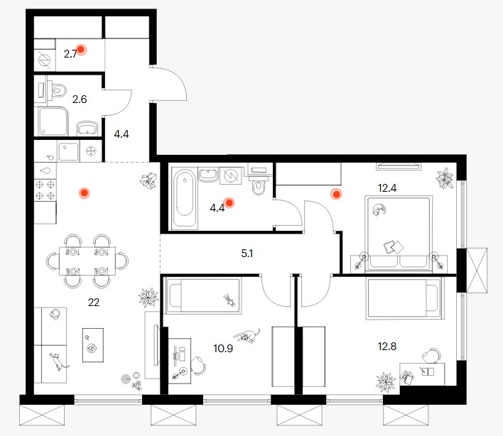 3-комн · 66 м² · 4 эт.