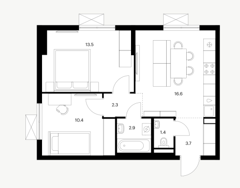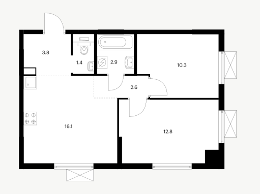 2-комн · 51 м² · 2 эт.