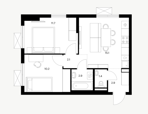 2-комн · 51 м² · 11 эт.