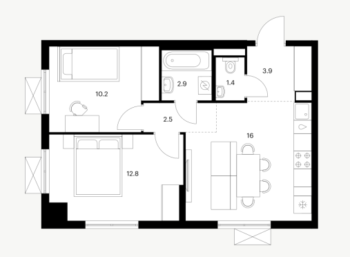 2-комн · 46 м² · 9 эт.