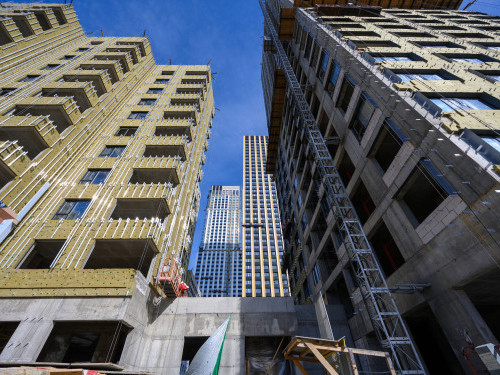 На первых этажах откроются магазины, кафе и салоны красоты. В подъездах установят по три пассажирских и одному грузовому лифту. Предусмотрен подземный паркинг на 2000 машиномест.