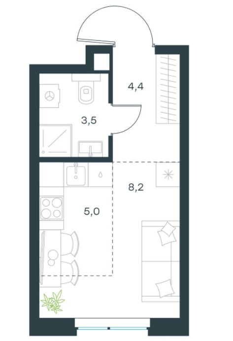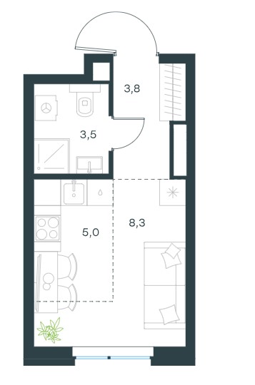 Студия · 21 м² · 2 эт.