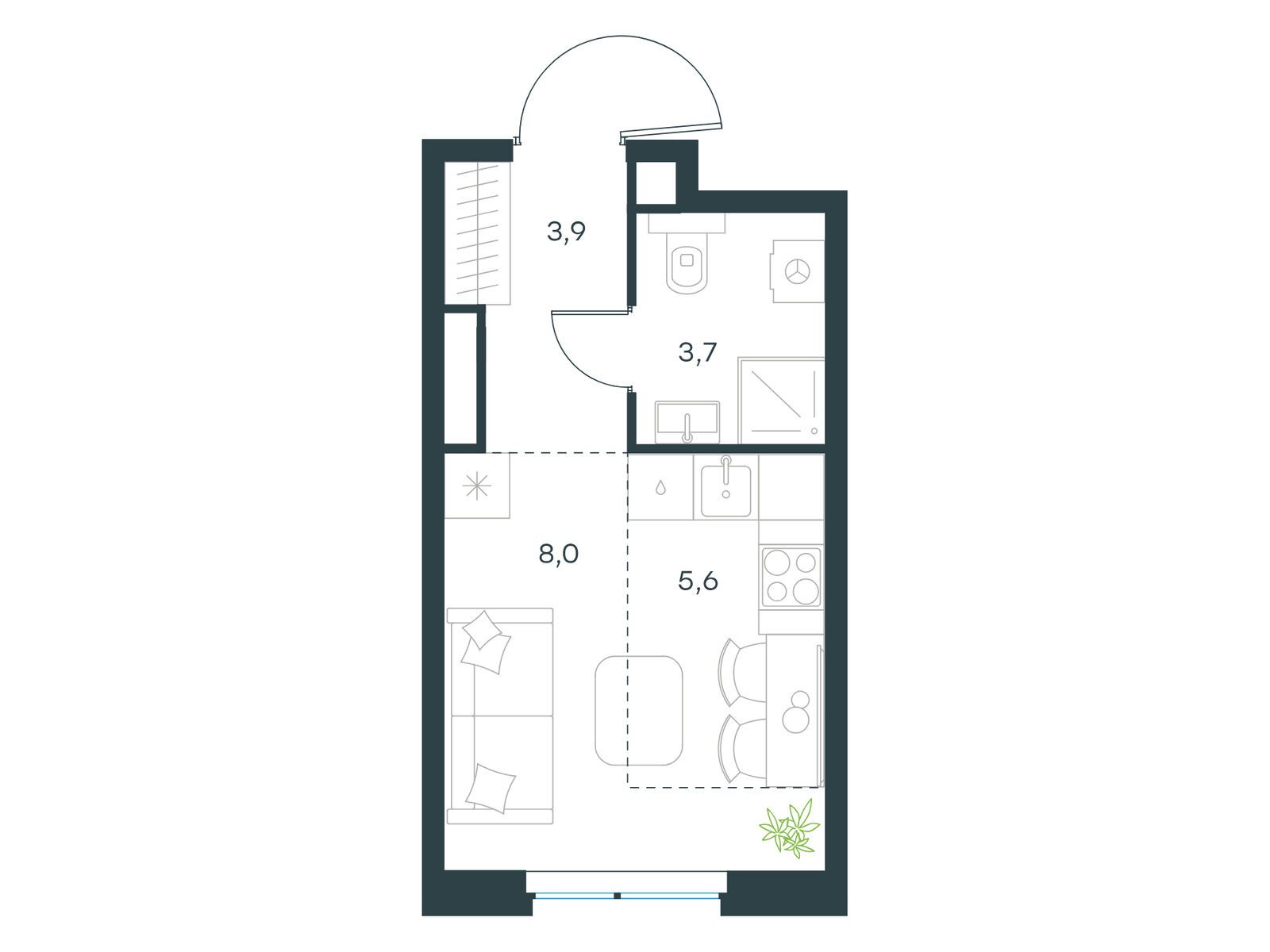 Студия · 22 м² · 2 эт.