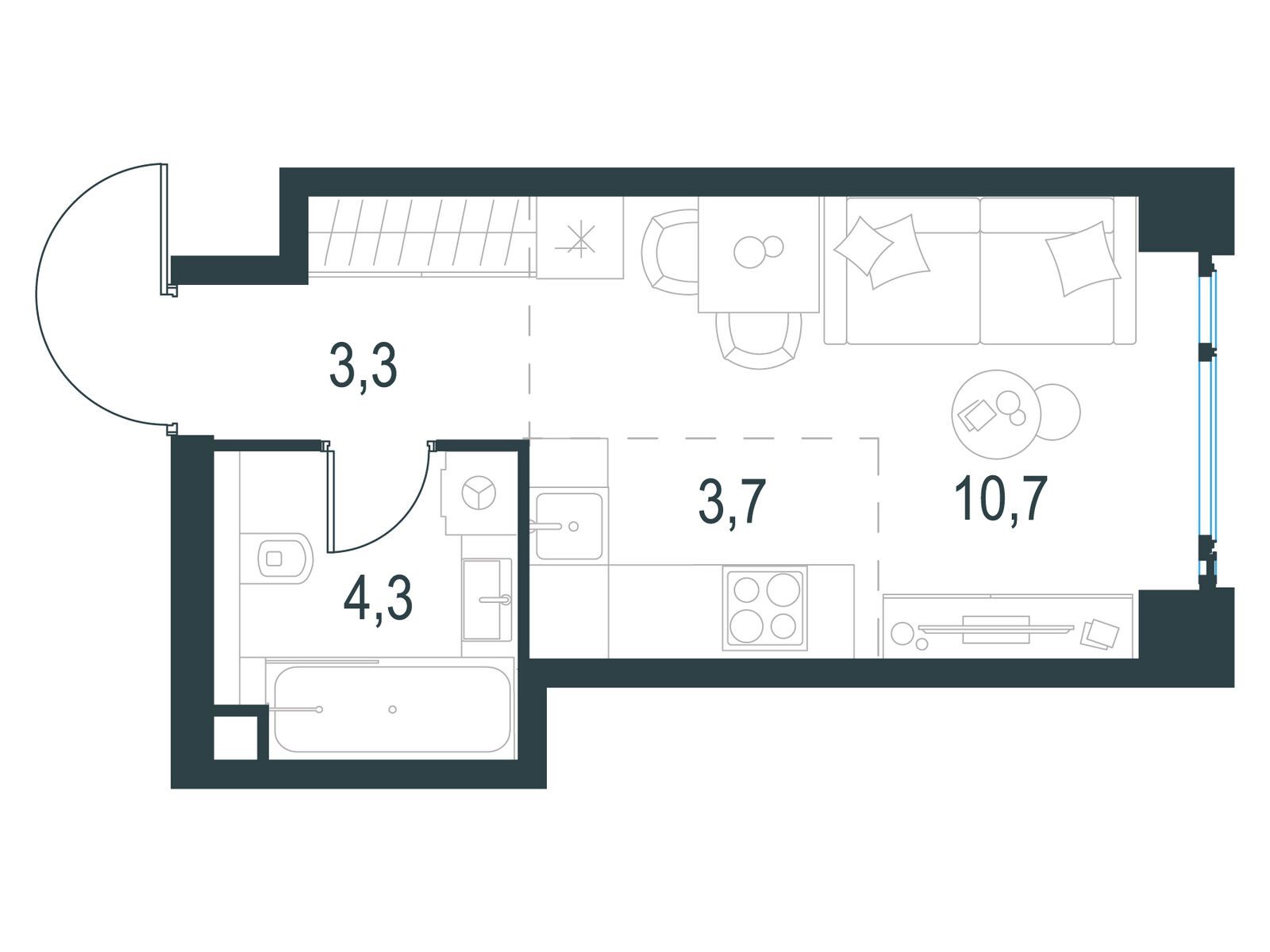 Студия · 22 м² · 37 эт.