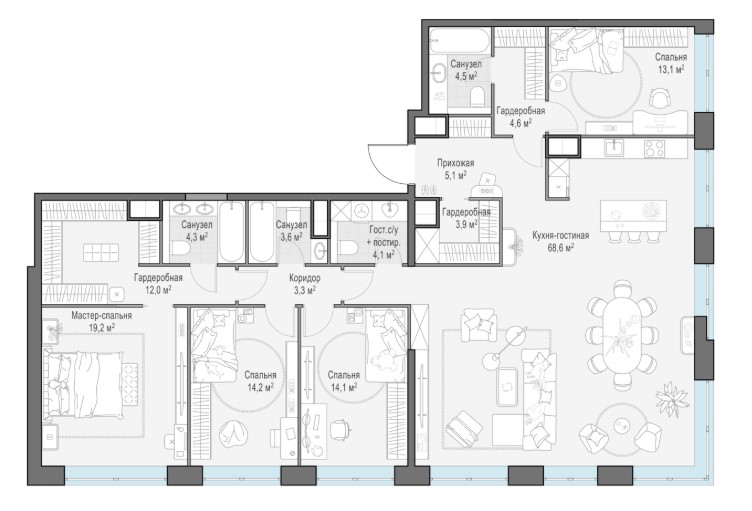 Минимальная площадь: 27,0 м² Максимальная площадь: 174,0 м²
