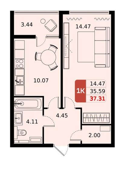 1-комн · 37 м² · 17 эт.