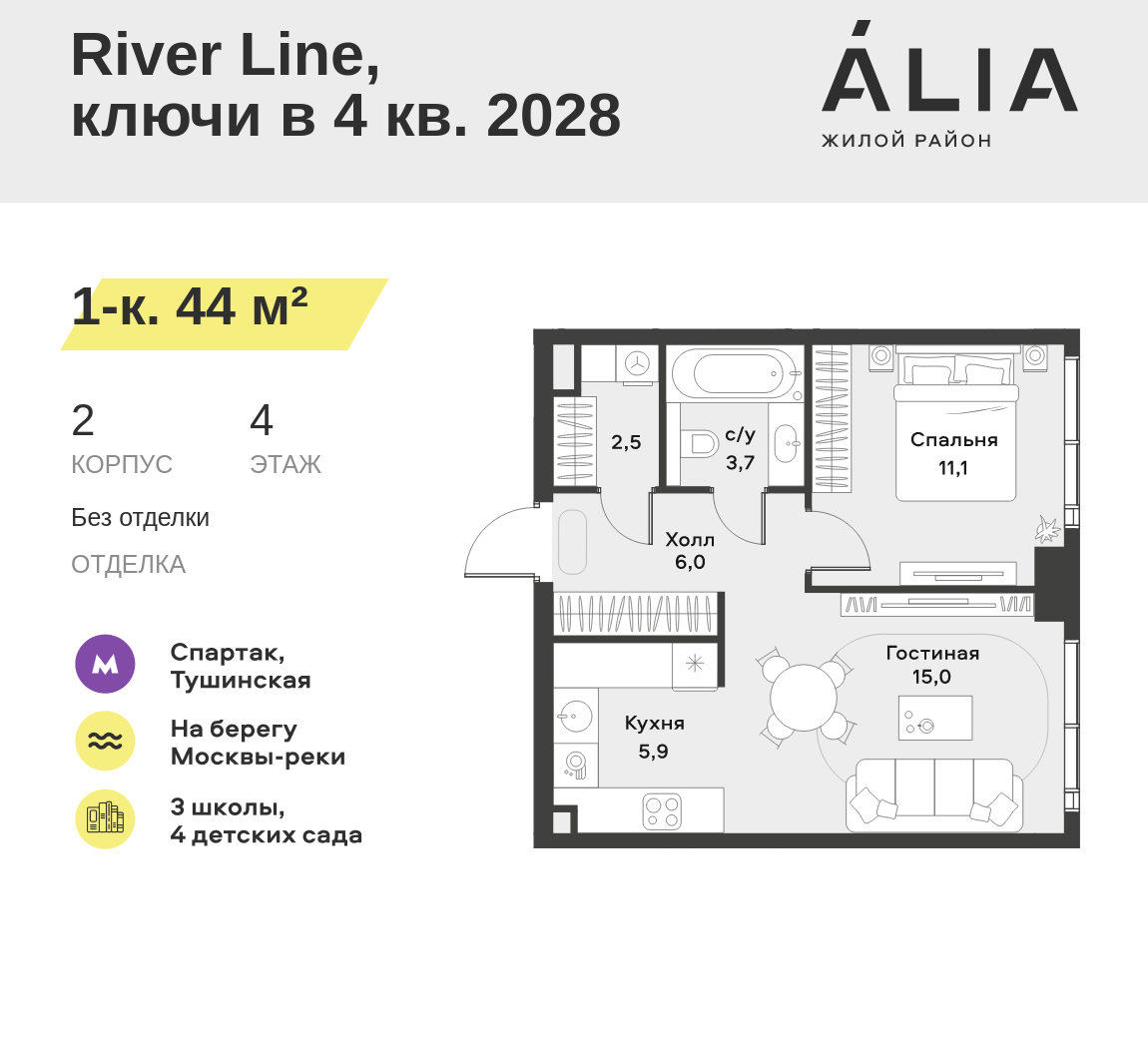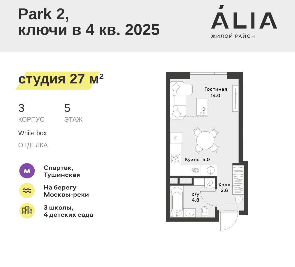 ЖК "ALIA" — часть микрорайона на улице Лётная в районе Покровское-Стрешнево. На северо-западе столицы, на участке 65 га бывшего аэродрома Тушино, несколько компаний возводят около 1 млн кв. м недвижимости. В проект заложено 90 млрд рублей инфестиций.
