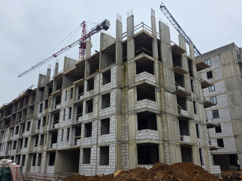 Первые этажи нежилые. Помещения предназначены под кафе, магазины и салоны красоты. В проект входят два детских сада и школа.