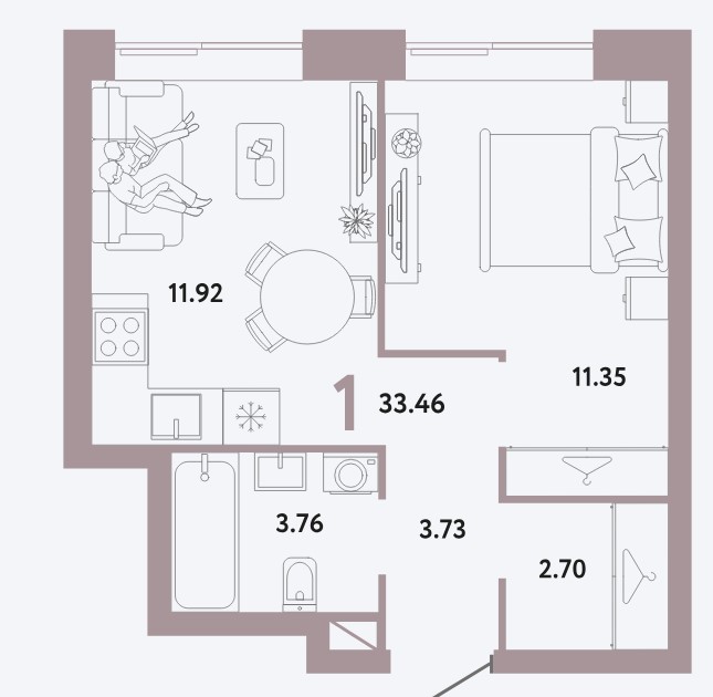 1-комн · 33 м² · 2 эт.