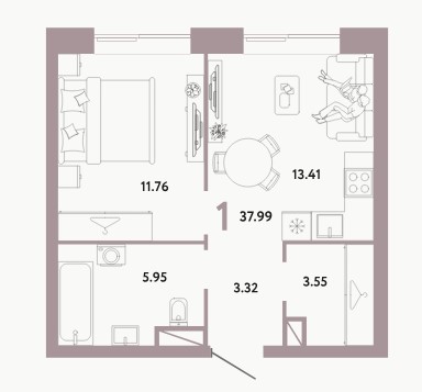 1-комн · 38 м² · 3 эт.