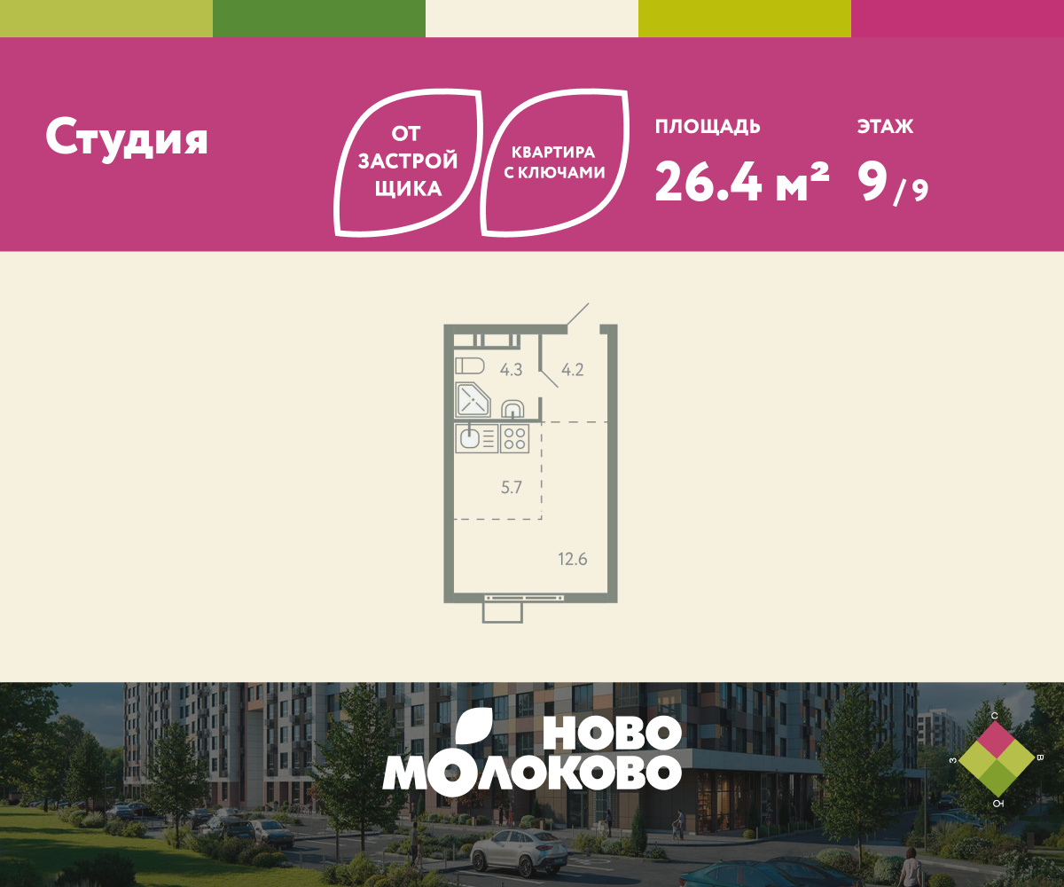 Студия · 26 м² · 9 эт.