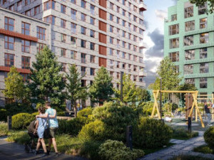 Первые этажи жилых зданий отведены под магазины, кафе, службы быта и пр. учреждения. Внутренние дворы застройщик благоустроит. Всего в микрорайоне запроектировано 56 детских игровых и 26 спортивных площадок. В центральной части расположится зона отдыха с парком и прогулочными дорожками.