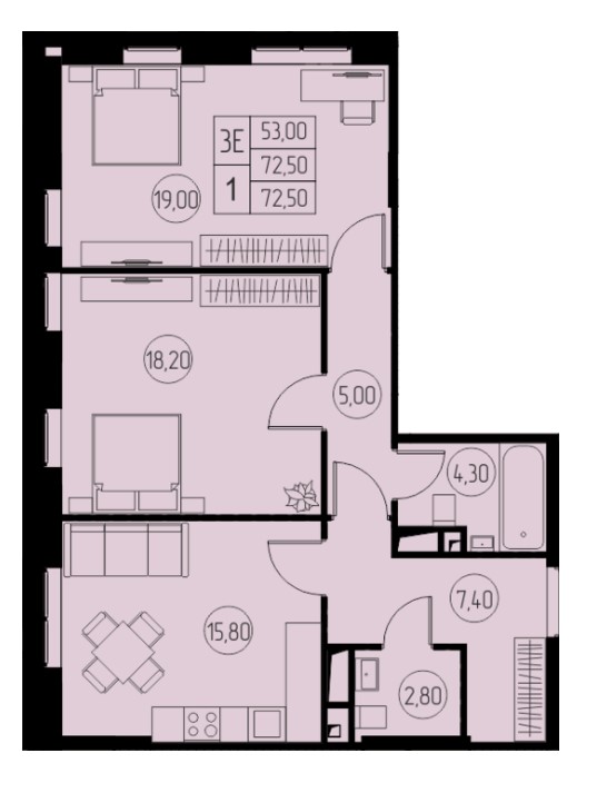 3-комн · 73 м² · 22 эт.