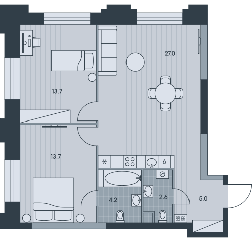 2-комн · 46 м² · 27 эт.