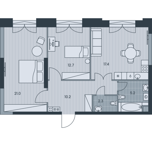 2-комн · 43 м² · 10 эт.