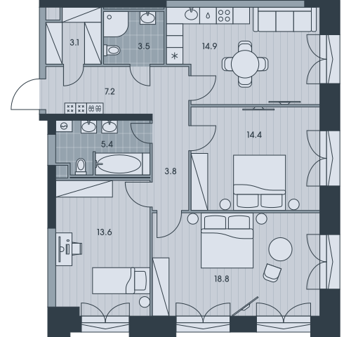 3-комн · 71 м² · 20 эт.