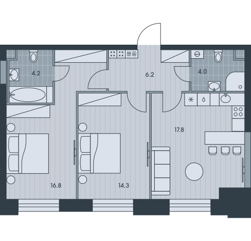 2-комн · 62 м² · 34 эт.