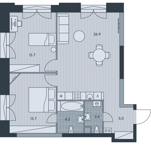 2-комн · 77 м² · 34 эт.