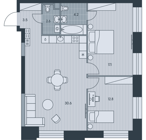 2-комн · 45 м² · 30 эт.