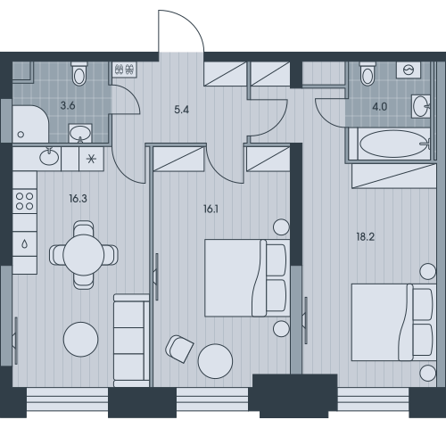 2-комн · 46 м² · 16 эт.