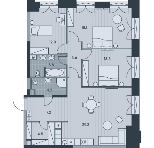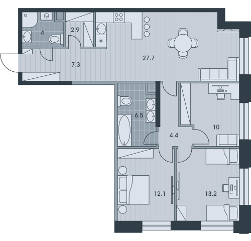 3-комн · 98 м² · 30 эт.