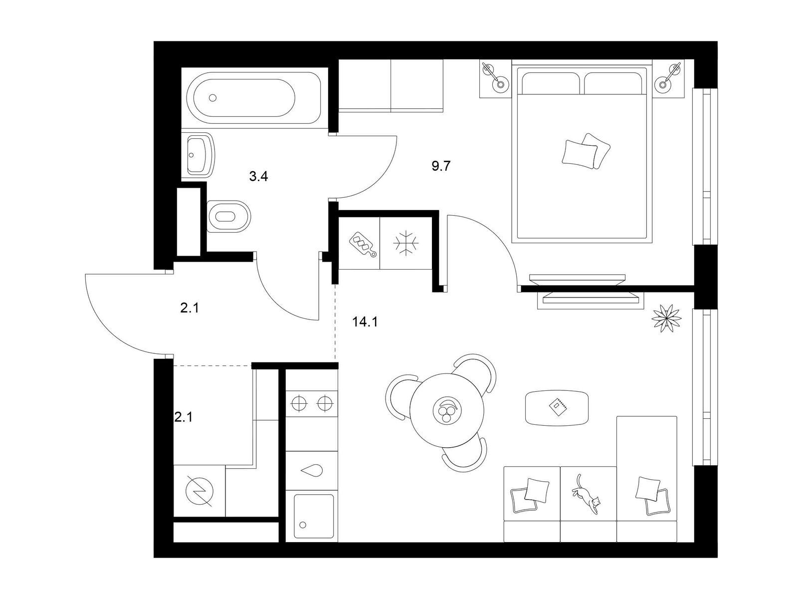1-комн · 34 м² · 2/21